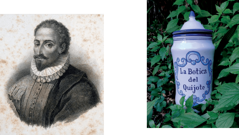 Cervantes es buen conocedor de los asuntos relacionados con las curas y los remedios medicinales de la época. Cervantes conoce un centenar de remedios medicinales, que los refleja en el Quijote. Mayoritariamente plantas como las malvas, el romero…. (para fabricar el famoso bálsamo de Fierabras), pero también remedios obtenidos de determinados animales (como el Castor y/o minerales (como el azufre, o el mercurio). Según se refleja en mi libro “La Botica del Quijote”.